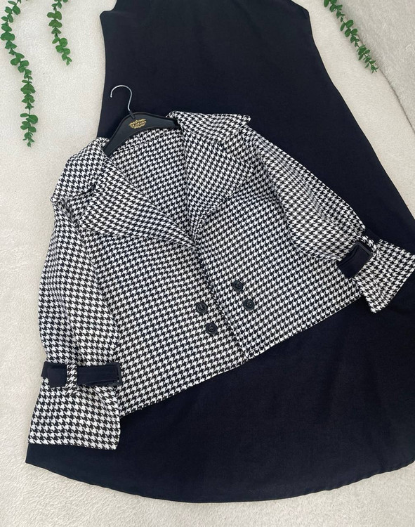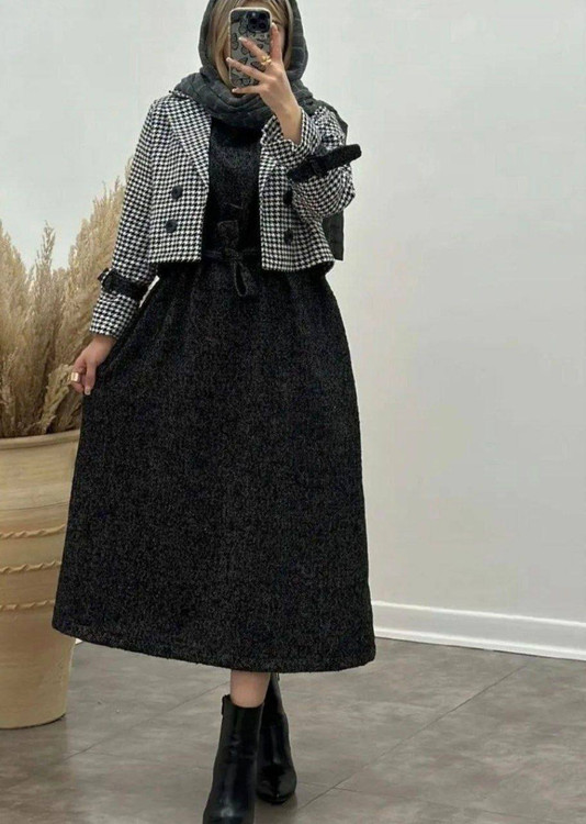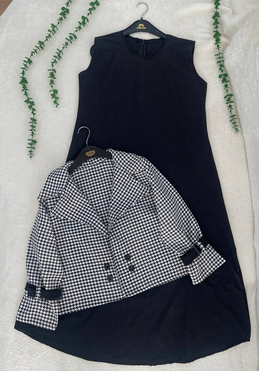 ✅فری از36 تا 44 - قد کت حدود 50 - دورسینه حدود 102 - قد استین از یقه حدود 58 - قد سارافون حدود 122 - دورسینه 104 پشت سارافون زیپ دارد